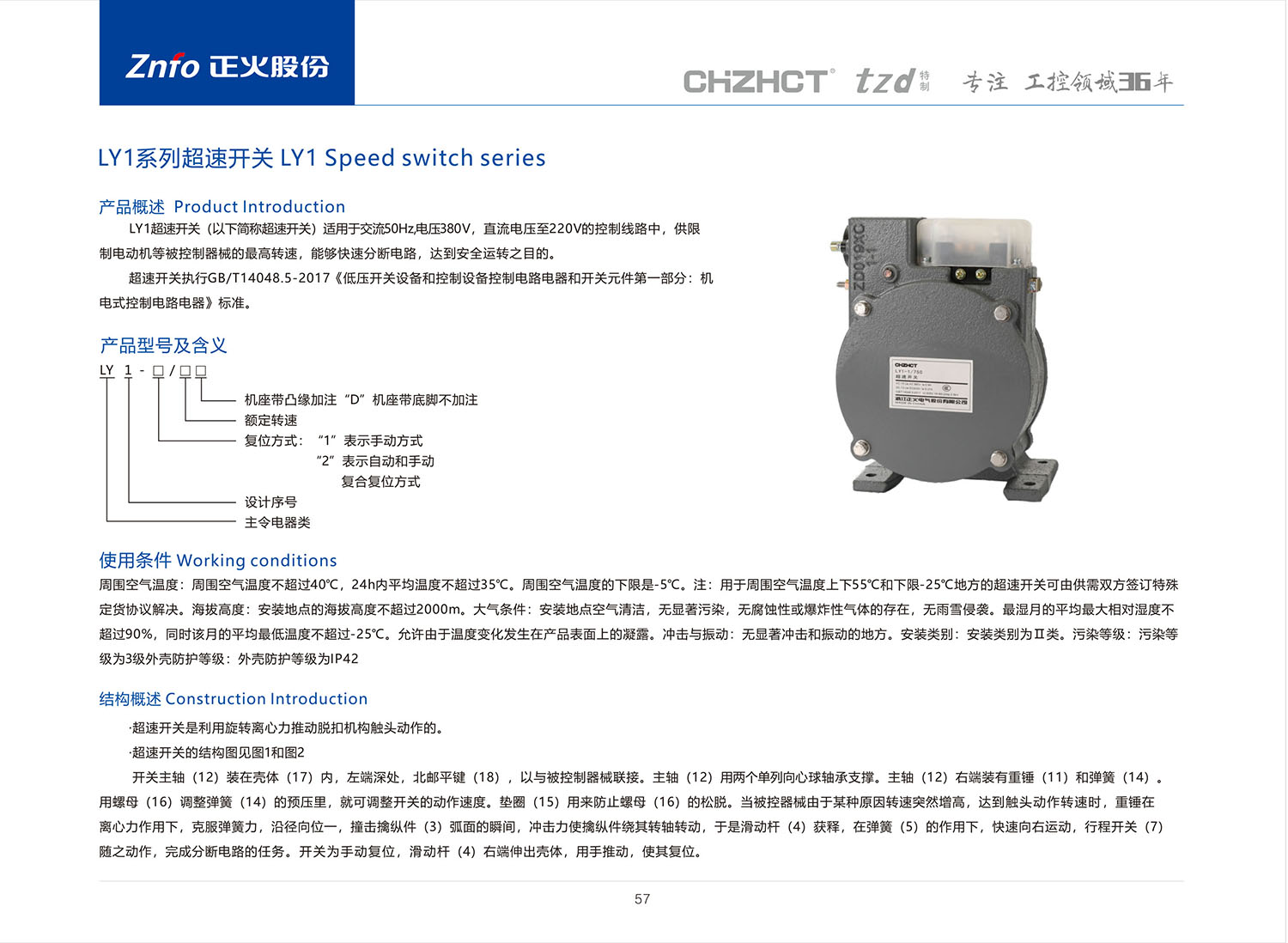 LY1系列超速開關(guān)產(chǎn)品說明書