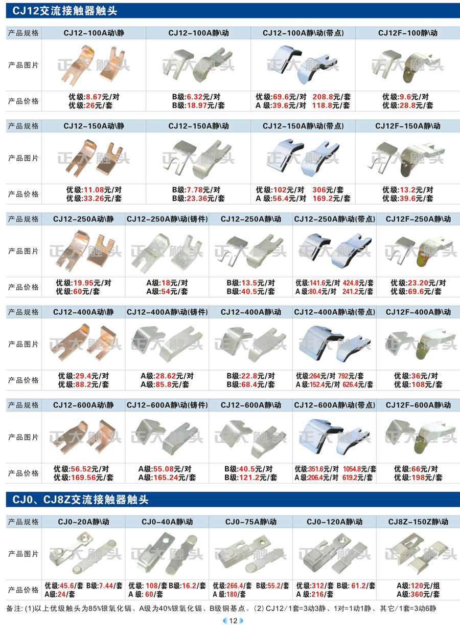CJ12、CJ0、CJ8Z交流接觸器觸頭
