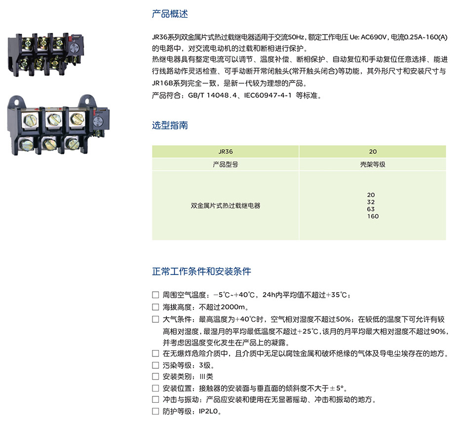 網(wǎng)站首頁(yè) > 產(chǎn)品中心 > 工業(yè)控制與保護(hù) > 繼電器 > 熱過(guò)載繼電器 > JR36系列熱過(guò)載繼電器