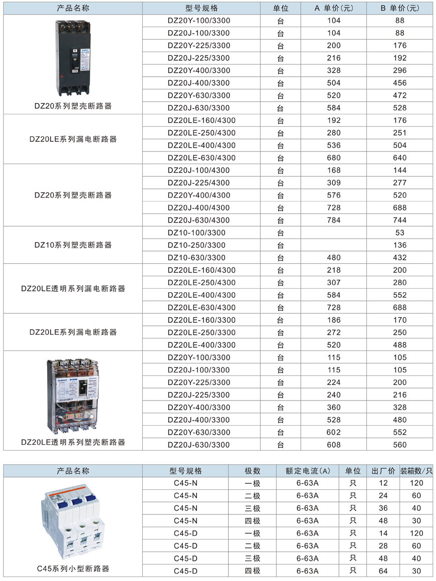 DZ20、DZ10、C45小型塑殼、漏電斷路器