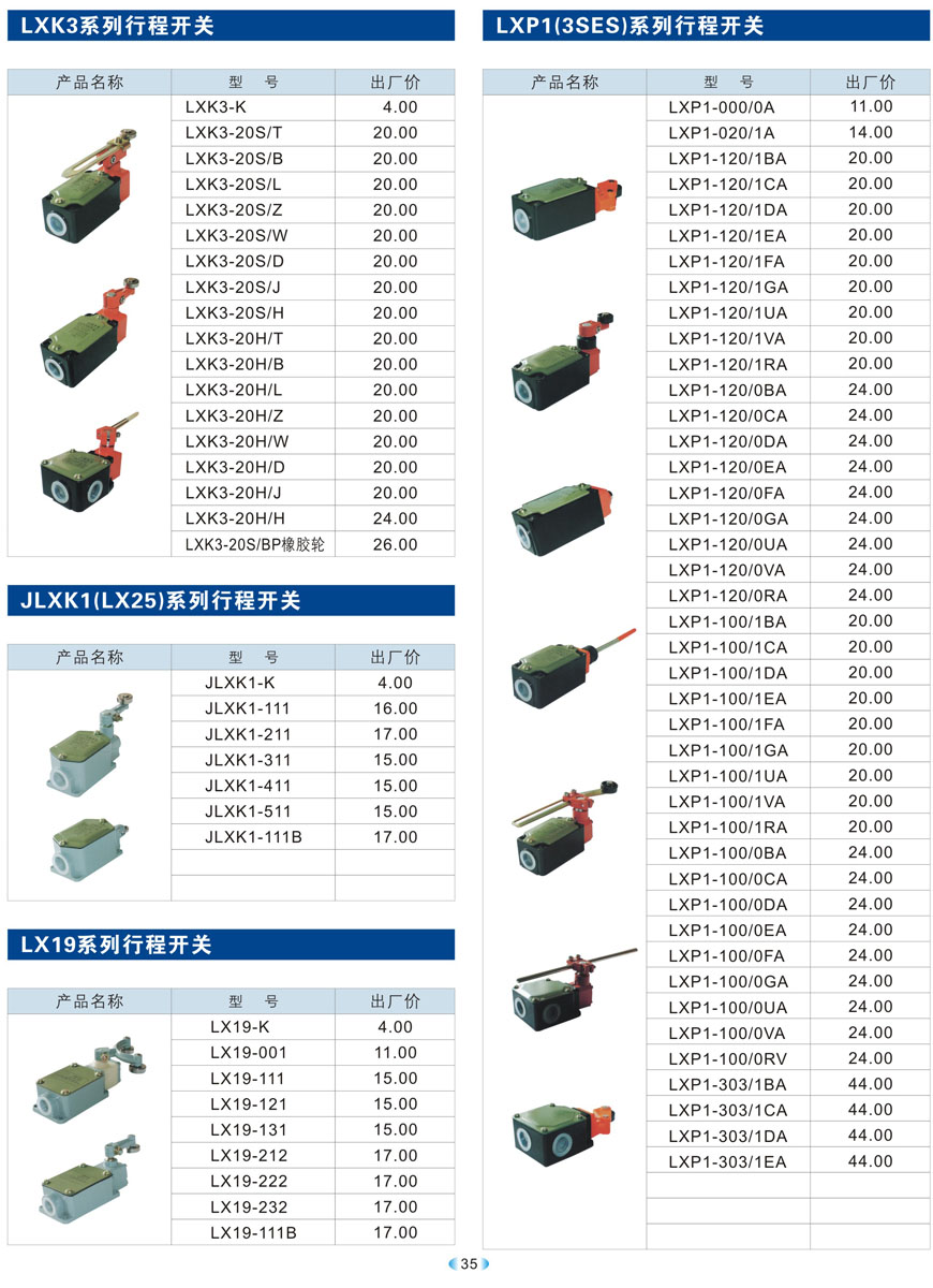 LXK3、JLXK1(LX25)、LX19、LXP1(3SES)系列行程開關(guān)
