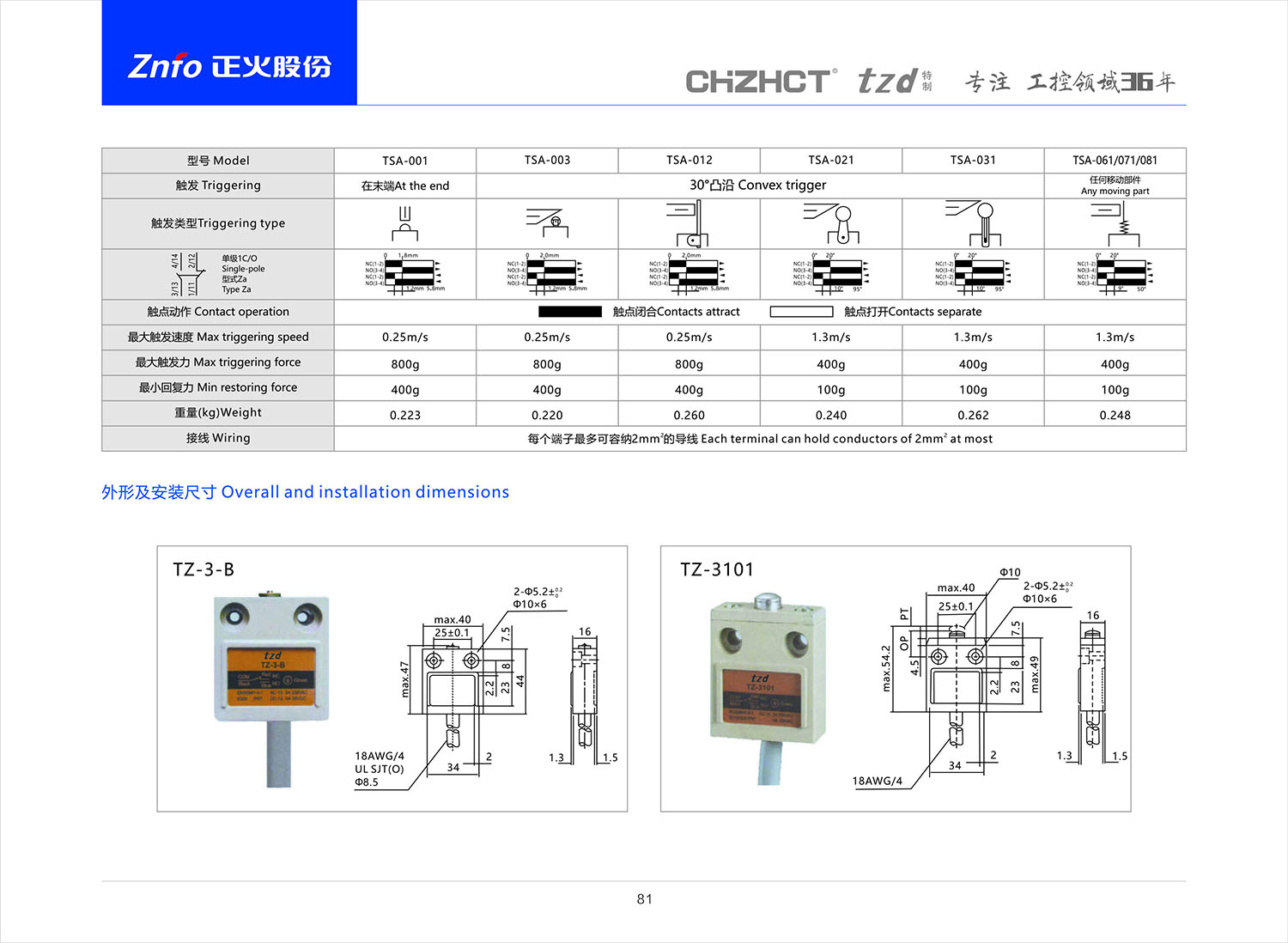 TZ-3 防水限位開關產(chǎn)品說明書