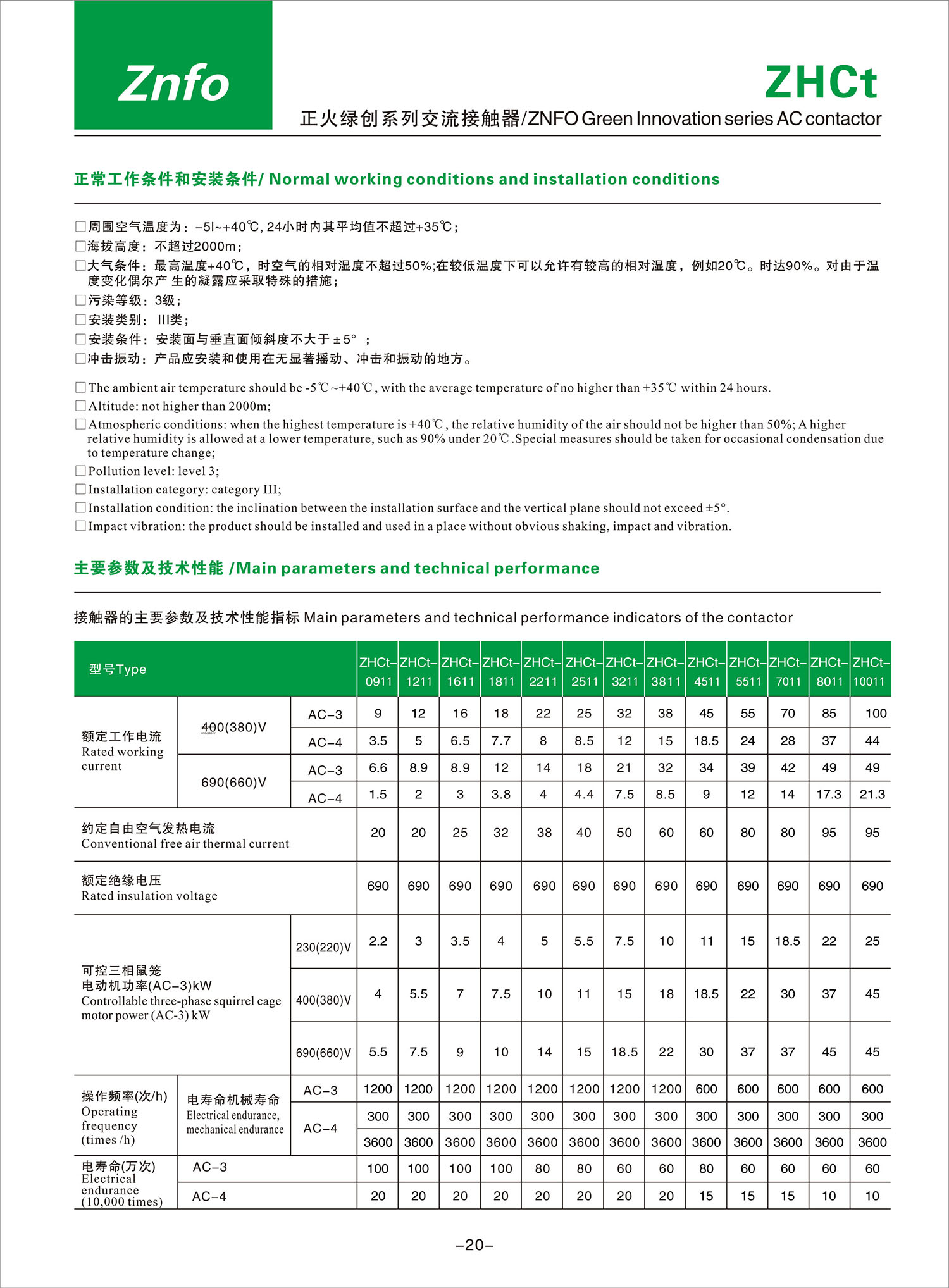 ZHCt 改款型交流接觸器產(chǎn)品說明書
