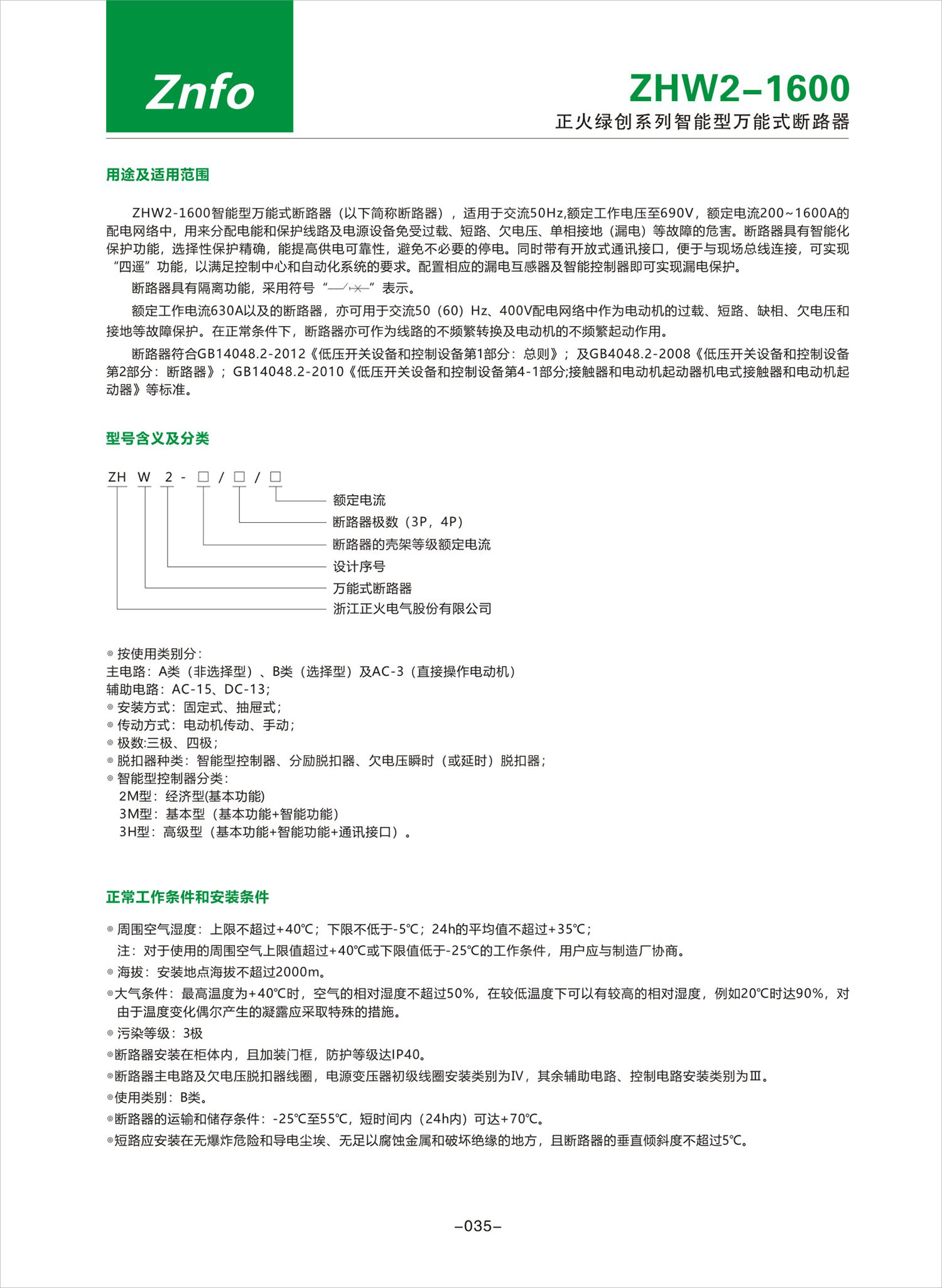 ZHW2-1600系列智能型萬能式斷路器產(chǎn)品說明書