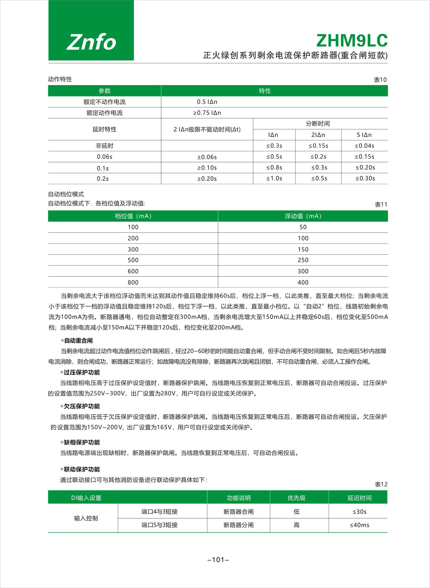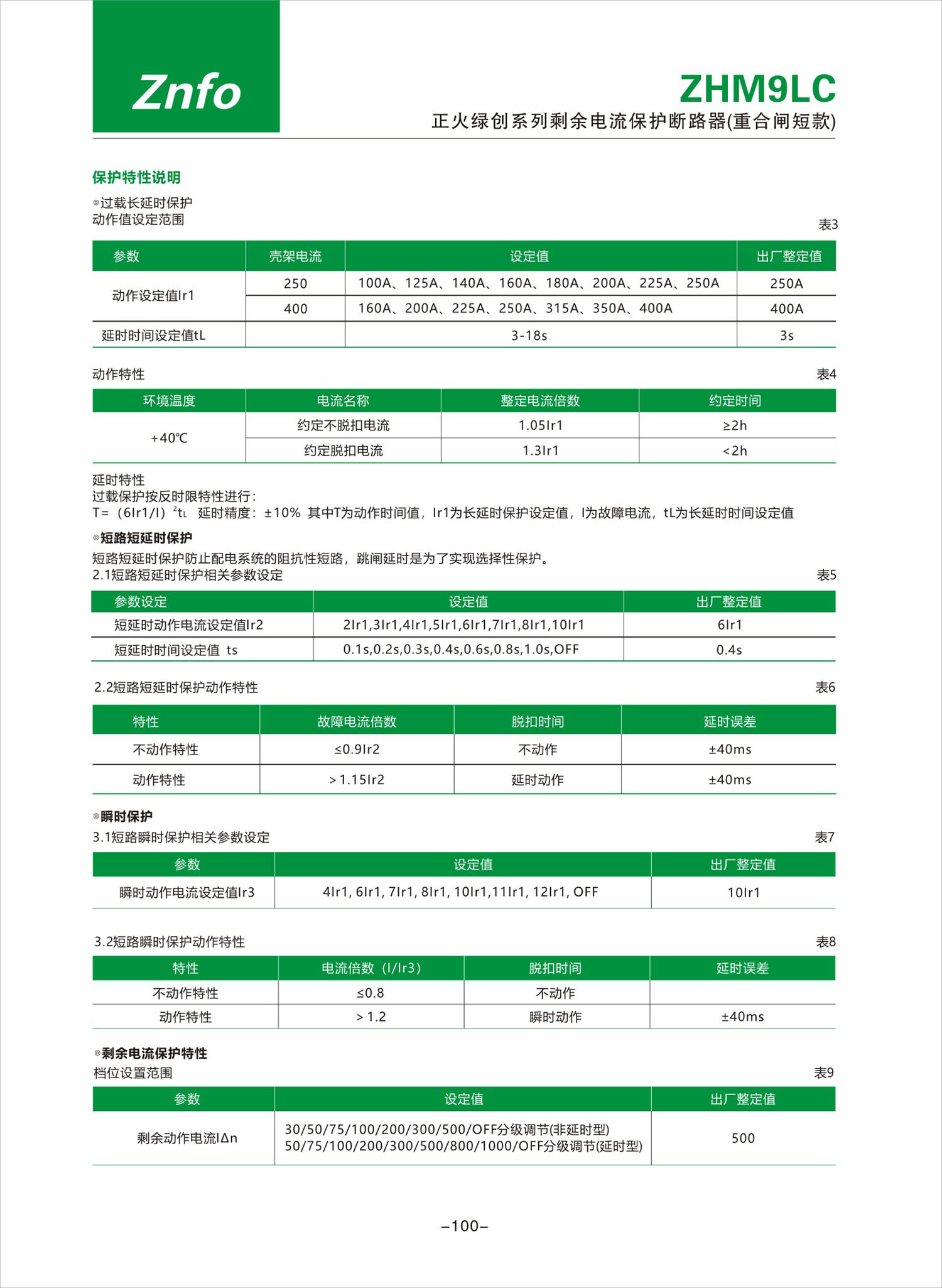 ZHM9LC系列剩余電流保護斷路器(重合閘短款)產(chǎn)品說明書